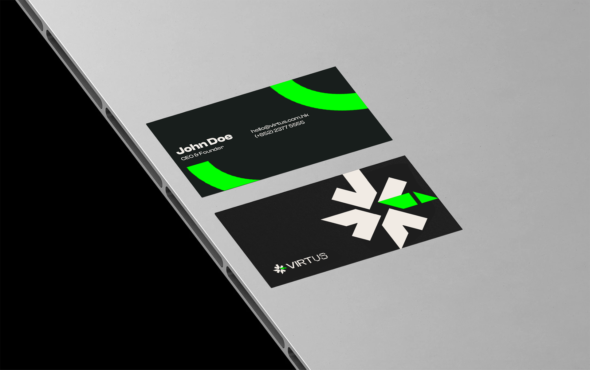 The Virtus mark - a geometric starburst in black and green captures snowflake precision with auroral glow. Bold typography drives the message: "Do More with the Team You Have." Calls to action pulse in lime green, inviting engagement. The identity feels alive and unified, turning tools into symbols of team empowerment.